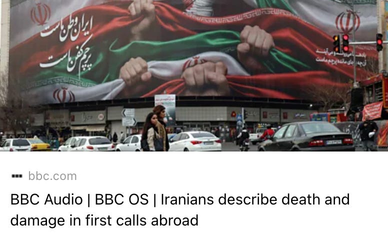BBC interviewed 2 other Iranian women and me. We all want liberation for Iran, but see different paths: One wants to bomb, one is skeptical about intervention, and I don’t trust anyone who kidnaps and kills their own people, crushes free speech, and facilitates genocide to suddenly care about Iranians.
